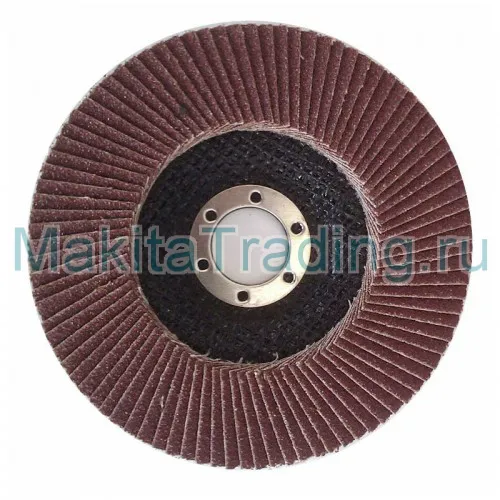 Лепестковый шлифовальный диск makita D-27763 с основанием из стекловолокна и абразивом из циркониевого электрокорунда (тип Z).