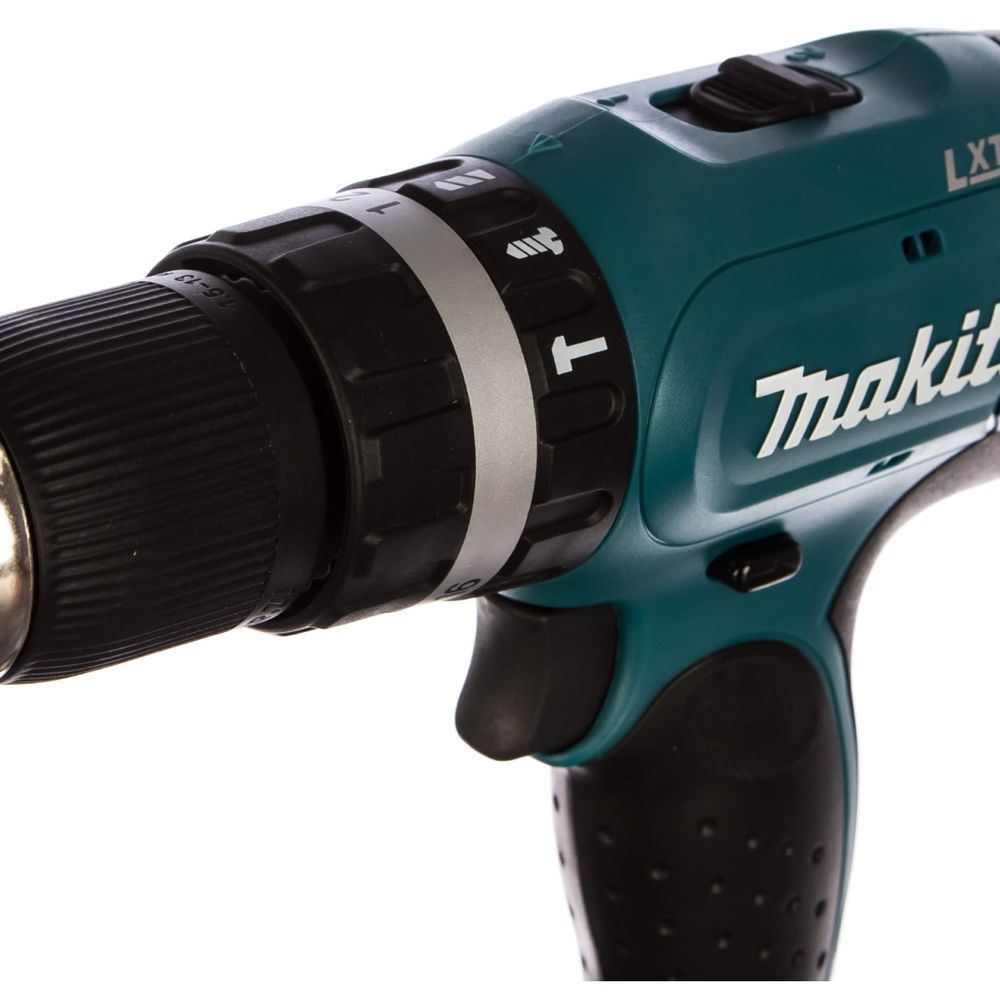 Что касается функций шуруповёрта, то они также реализованы весьма достойно. Количество установок крутящего момента – 16, установка биты не потребует лишних манипуляций. Связано это с тем, что патрон в инструменте Makita DHP453RFE – быстрозажимной, на 13 мм.