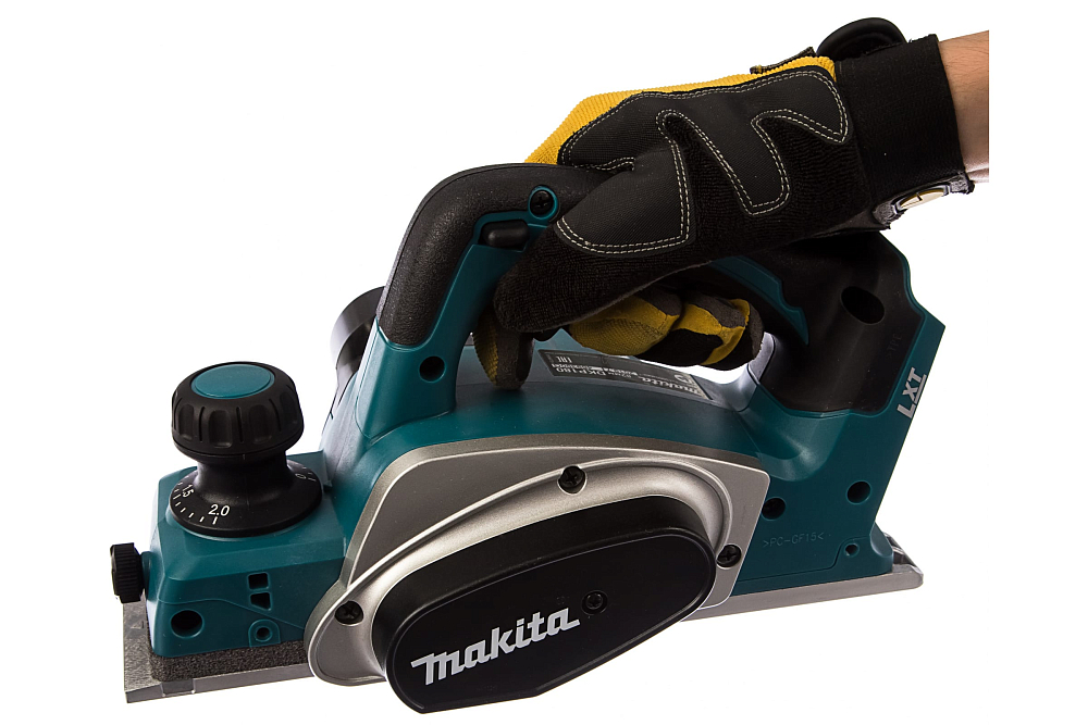 Конструкция рубанка Makita DKP180Z полностью соответствует традициям, свойственным продукции производства Макита. Агрегат весит всего 3,4 кг и при длине 33,3 см прекрасно сбалансирован и легко удерживается за счёт эластомерного покрытия рукоятки и её эргономичной формы. Мощности привода рубанка вполне хватает для строгания твёрдой древесины, ведь питание осуществляется от литиево-ионного аккумулятора с повышенным напряжением 18 В.