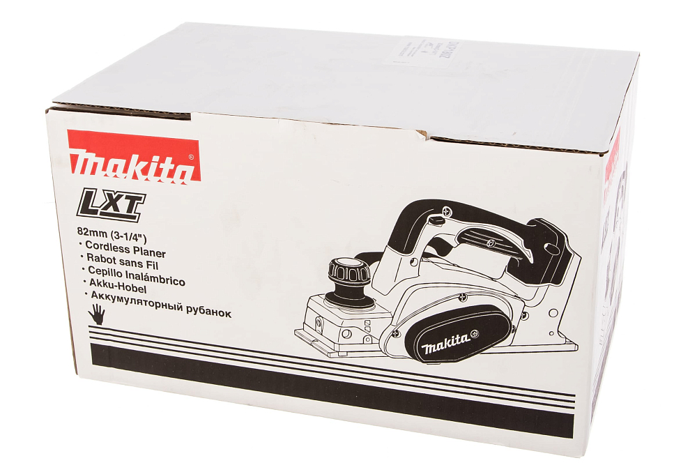 Комплект поставки рубанка Makita DKP180Z ограничен до минимума – в него входит только сам инструмент. Однако, это не только маркетинговый ход, но и возможность мастеру подобрать для себя подходящий набор расходных материалов, с помощью которого этот агрегат можно превратить в универсальный строгальный станок. Поставщики рубанка предлагают потребителям широчайший ассортимент приспособлений, позволяющих выполнять практически все операции, связанные со строганием древесины, в том числе снятие фасок и фальцевание.