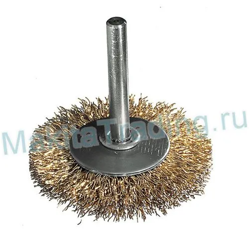 Щетка проволочная Makita P-66933 дисковая с латунным покрытием, подходит для больших поверхностей, удаляет ржавчину и лакокрасочные материалы.