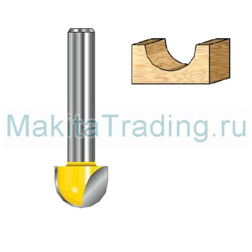 Галтельная фреза Makita D-47977 предназначена для работы с триммерами и фрезерами с диаметром цанги 8 мм.