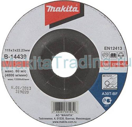 Отрезной диск c вогнутым центром Makita B-14451 используется для реза металла, предназначен для угловой шлифовальной машины.