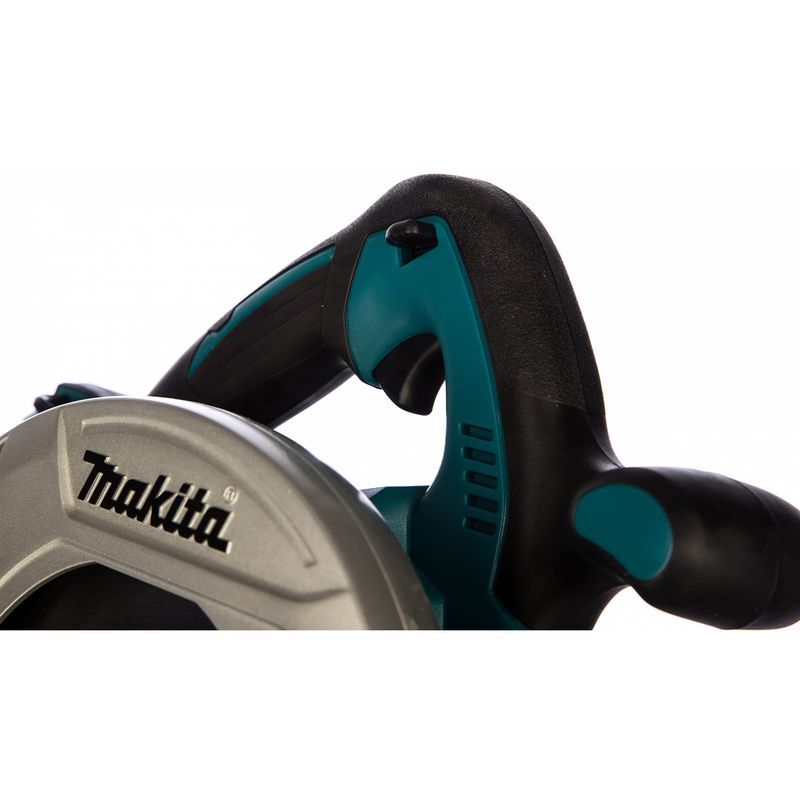 Работает эта циркулярка с диском на 185-190 мм, на холостом ходу разгоняет его до 4800 об/мин. Под прямым углом она способна пропиливать материал в глубину на 6,85 см, с максимальным наклоном в 50 градусов – на 4,4 см. Частота оборотов не регулируется, зато есть плавный пуск и электрический тормоз у двигателя. Имеется и встроенная подсветка. Длина у пилы Makita DHS710RM2J – чуть больше 35 см.