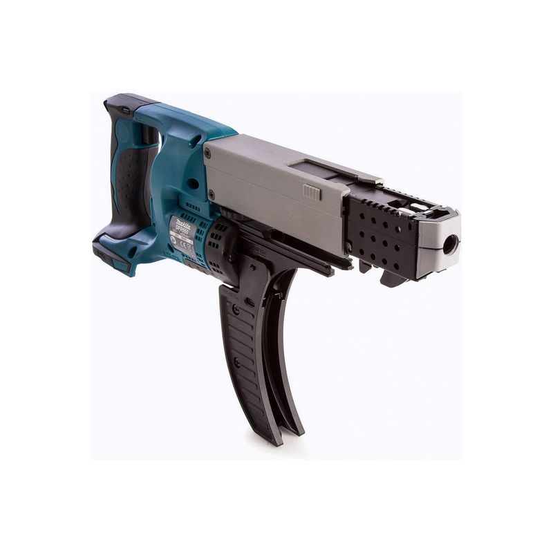 Потребность в таком инструменте при необходимости серийного крепежа щитов, панелей и т.п. очевидна. Шуруповёрт Makita DFR550Z с заправленным магазином своим видом не только показывает своё назначение, но чем-то напоминает оружие спецназовца. Действительно, это инструмент для профессионалов, и от него напрямую зависит быстрое и качественное исполнение работы, которую приходится делать много и часто.