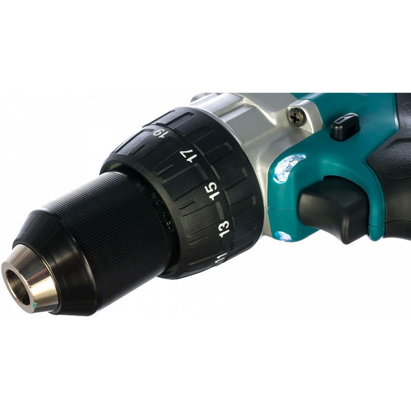 Число основных режимов работы – два. То есть Makita DDF481RTE можно применять как двухскоростную дрель и как шуруповёрт. Отметим, что в этой модели расширен диапазон регулировок крутящего момента, а чрезмерная затяжка крепежа может предотвращаться за счёт регулировки частоты вращения. Однако, возможно и высокоскоростное закручивание.