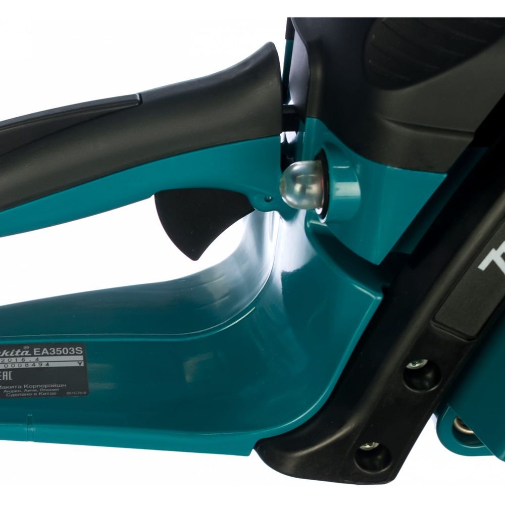 Заботиться о периодической смазке цепи пользователю не придётся – она у бензопилы Makita EA3503S40B автоматическая. Сама цепь стандартная, с шагом 3/8 дюйма и толщиной 1,3 мм. Следует отметить, что доступ к ней и к основной звёздочке максимально упрощен, так же удобно реализован механизм её натяжения. Производится эта операция с боковой стороны комбинированным ключом из комплекта поставки.