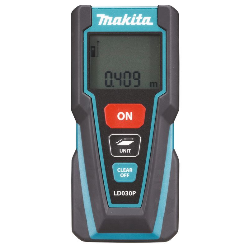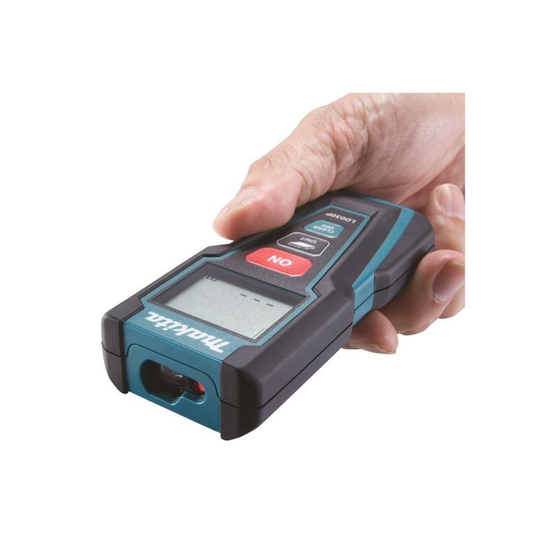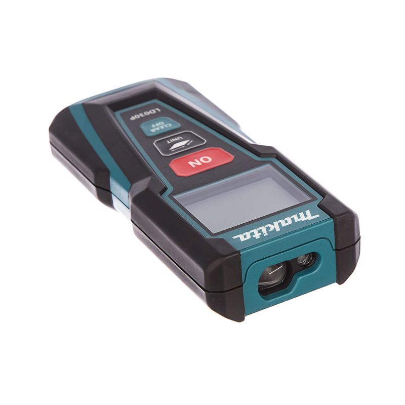 Функционирует дальномер Makita LD030P, как и все приборы этого класса, на принципе измерения времени прохождения отражённого лазерного луча от объекта. Соответственно, основные его компоненты – это излучатель, приёмник и средство отображения результатов измеренного расстояния – дисплей. Эта модель прибора предназначена для измерения расстояний в диапазоне от 20 см до 30 м, причём производится оно с высочайшей точностью - ± 2 мм.