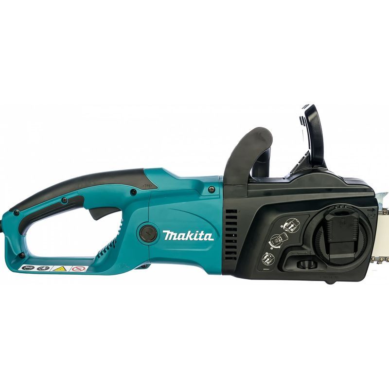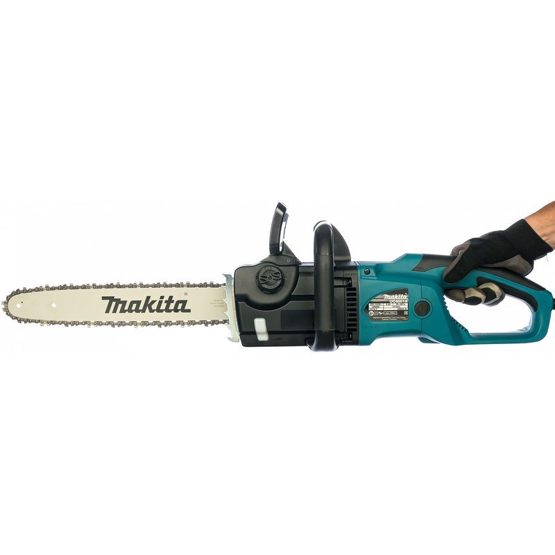 Конструкция электропилы Makita UC4051AX1 выполнена с учетом всех требований эргономики и безопасности, поэтому агрегат длиной 40,5 см и весом 5,7 кг легко удерживается в руках. Этому способствует сбалансированность компоновки, так что использовать описываемый инструмент можно без напряжения для рук при длительной эксплуатации.