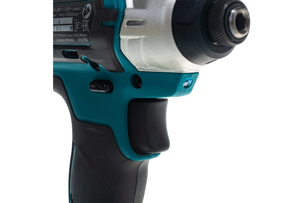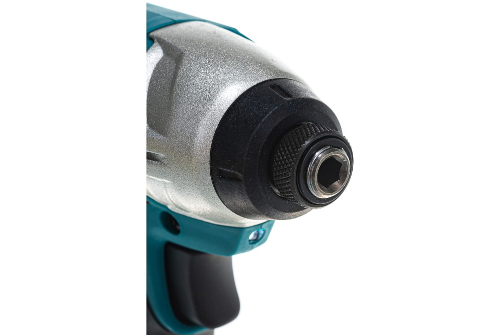 В комплект поставки гайковерта Makita TD110DWAE аккумулятор и зарядное устройство не входят, но это вполне оправдано потому, что в арсенале мастера они уже могут быть, а приобрести их при необходимости у поставщика инструмента проблем не составит. То же касается и стандартных бит, на которые рассчитан патрон агрегата типа «шестигранник».