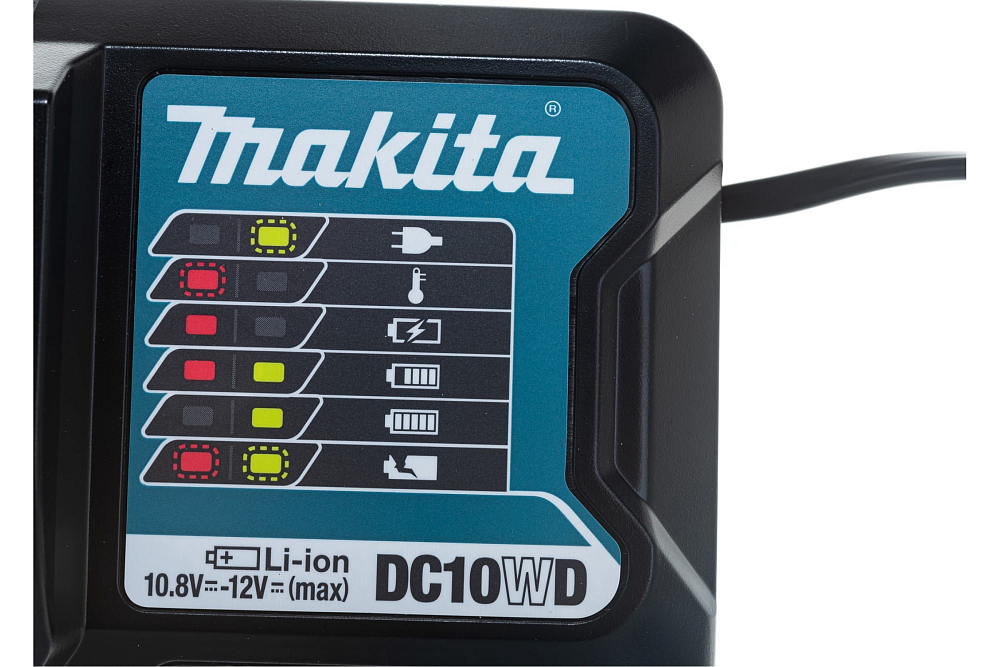 Используемый в инструменте Makita TD110DWAE аккумулятор имеет несколько ступеней защиты - от перегрузки привода, перегрева и недопустимого разряда. Это существенно повышает не только его ресурс, но и электродвигателя. Кроме того, в него встроен четырёхпозиционный индикатор разряда, так что пользователь всегда имеет возможность определить время до очередной зарядки.