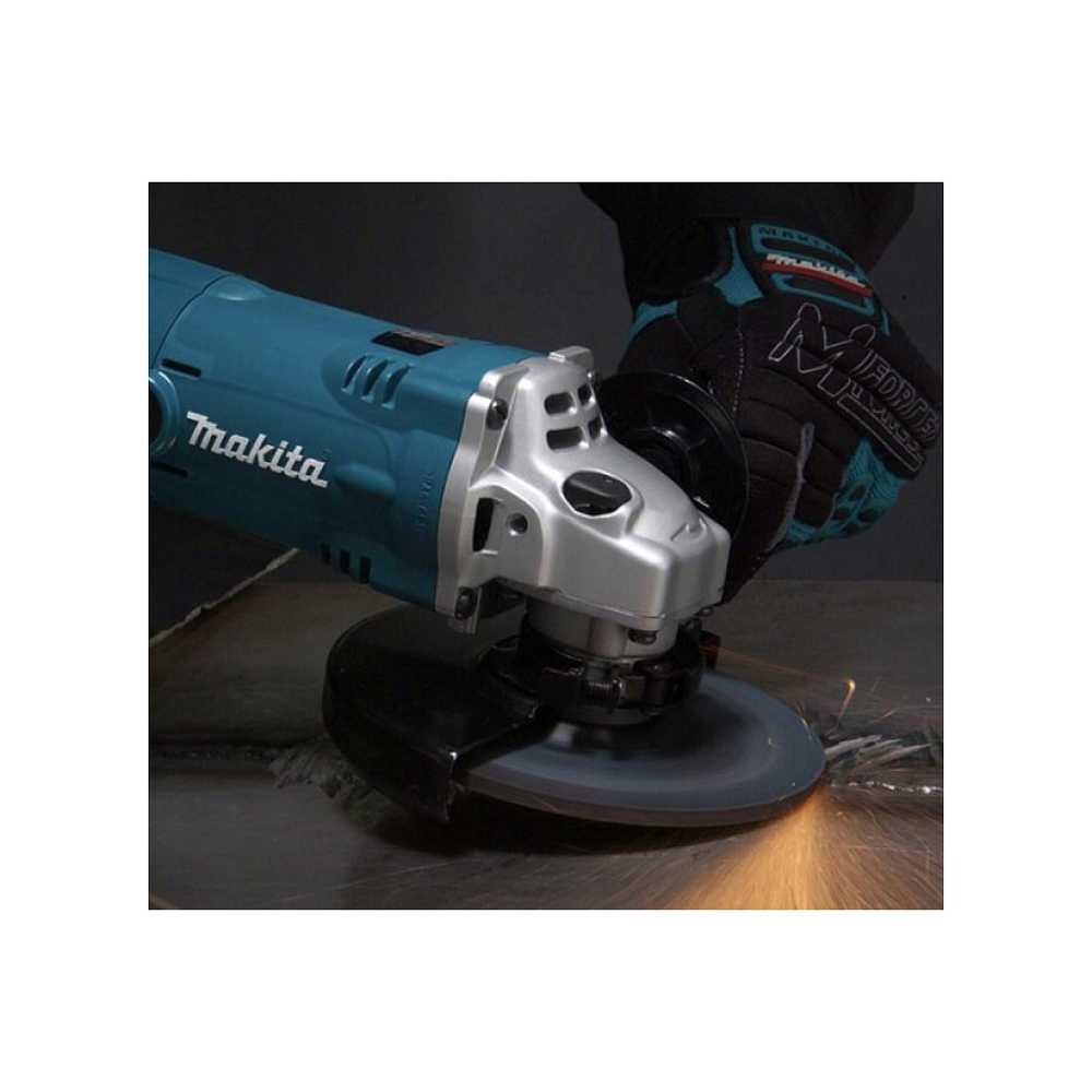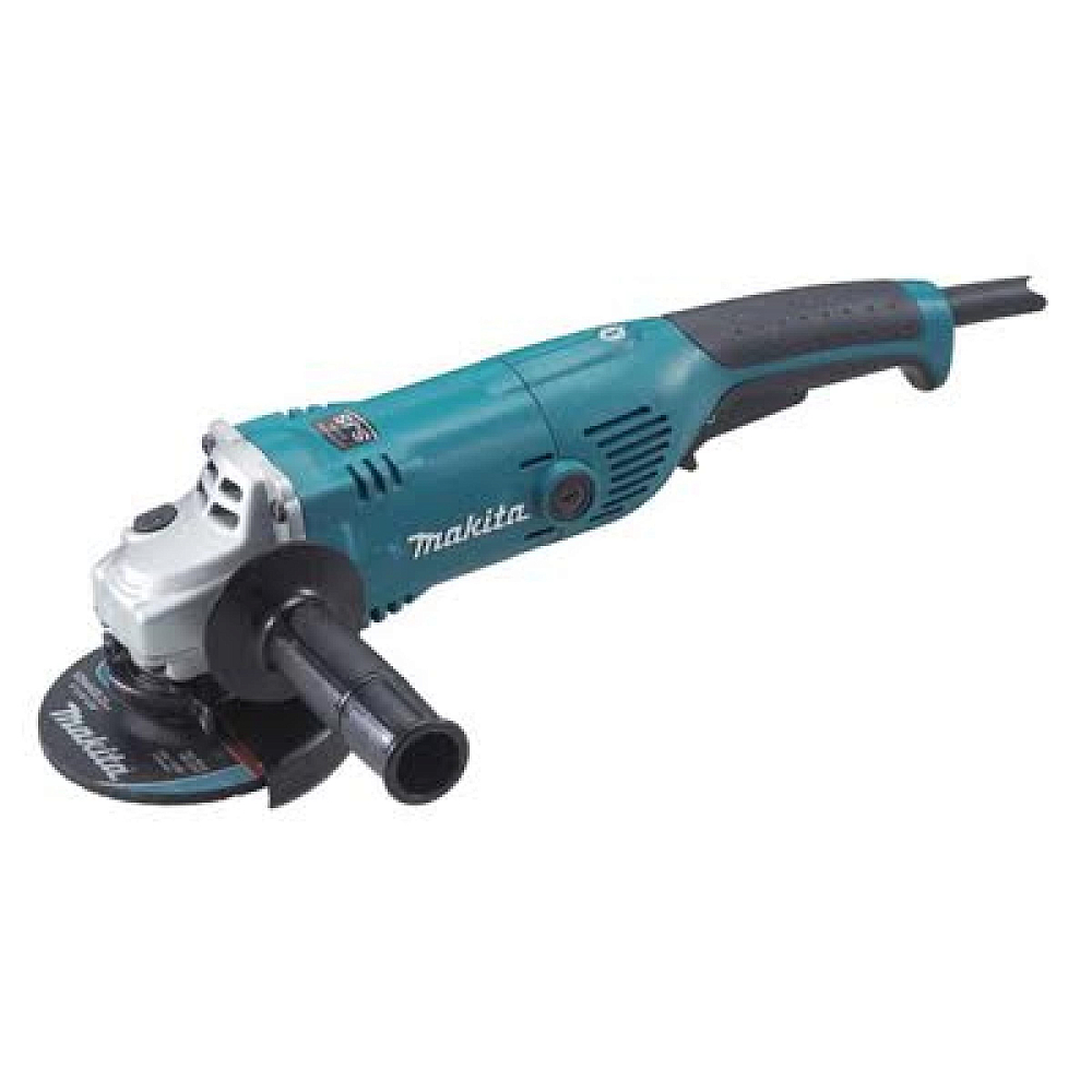 Причём касается это и оснащения привода шлифмашины Makita GA5021, и её конструкции. Во-первых, электродвигатель этой модели мощностью 1,05 кВт работает только на одной скорости – 11000 об/мин., и она поддерживается электроникой постоянной независимо от нагрузки, что важно для качественной обработки материала. Не менее важно и ограничение пускового тока агрегата, которое нейтрализует начальный удар, повышает ресурс двигателя и снижает уровень помех в электросети.