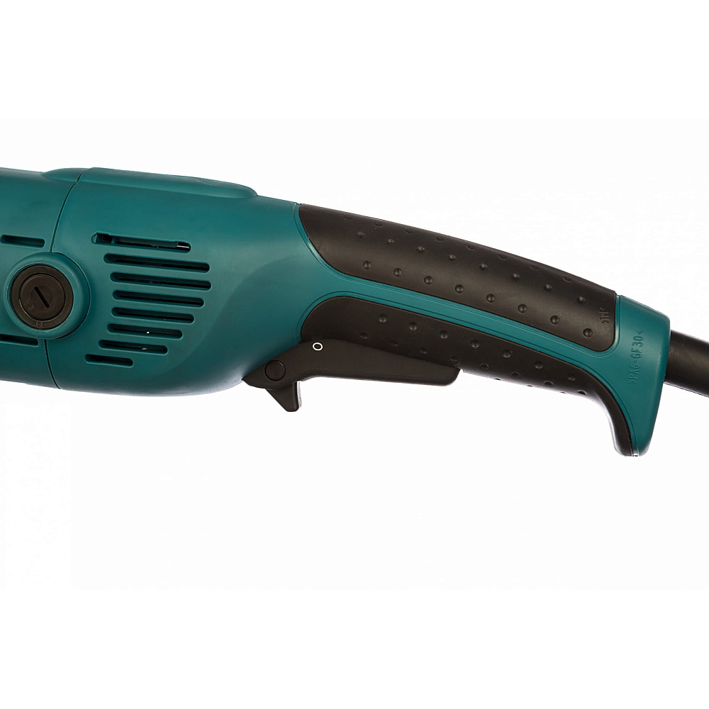 Причём касается это и оснащения привода шлифмашины Makita GA6021, и её конструкции. Во-первых, электродвигатель этой модели мощностью 1,05 кВт работает только на одной скорости – 9000 об/мин., и она поддерживается электроникой постоянной независимо от нагрузки, что важно для качественной обработки материала. Не менее важно и ограничение пускового тока агрегата, которое нейтрализует начальный удар, повышает ресурс двигателя и снижает уровень помех в электросети.