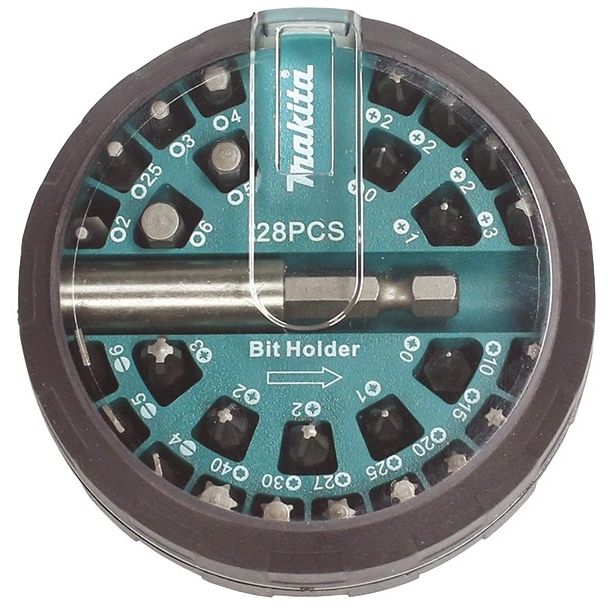 Использовать шуруповерт с любым крепежом возможно только при наличии полного ассортимента насадок под любые головки винтов с различными типоразмерами. Эту задачу выполняет комплект бит Makita B-28911, в котором их 27 штук – под плоский шлиц, крестовые и шестигранные.