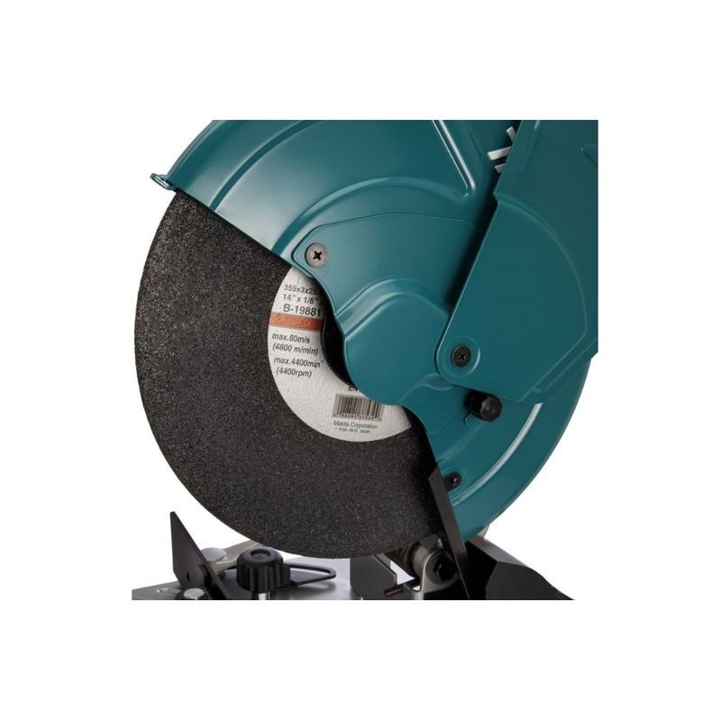 Диаметр его в отрезной пиле Makita LW1400 составляет 35,5 см, устанавливается он на шпиндель с посадкой 25,4 мм. Диск, а также торцовый ключ SW17 входят в комплект поставки этого инструмента весом 17 кг и занимающего на столе площадь 53х29,5 см. Использовать пилу можно для распиливания заготовок из любого материала – от черного и цветного металла до керамики и пластика.