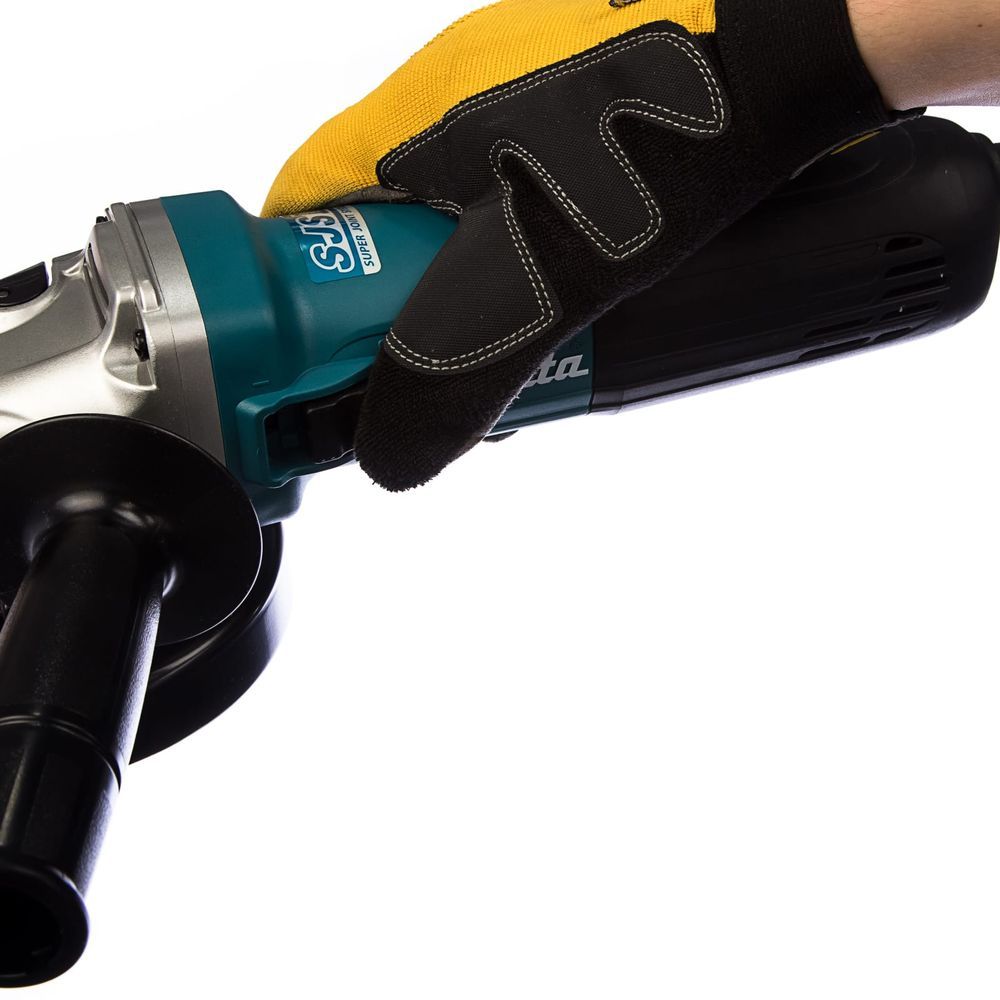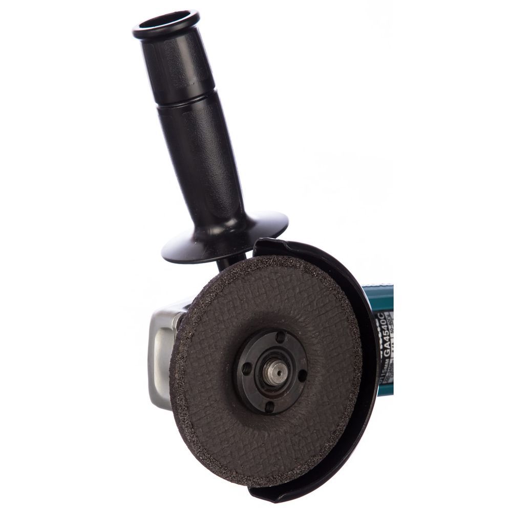Конструкция УШМ Makita GA4540C выверена до мелочей, ведь опыт производства такого инструмента у японской компании огромен. При массе 2,5 кг и длине порядка 30 см агрегат прекрасно сбалансирован по весу и удобно лежит в руке. Так же удобна и боковая рукоятка (она входит в комплект поставки), которую можно установить с любой стороны.