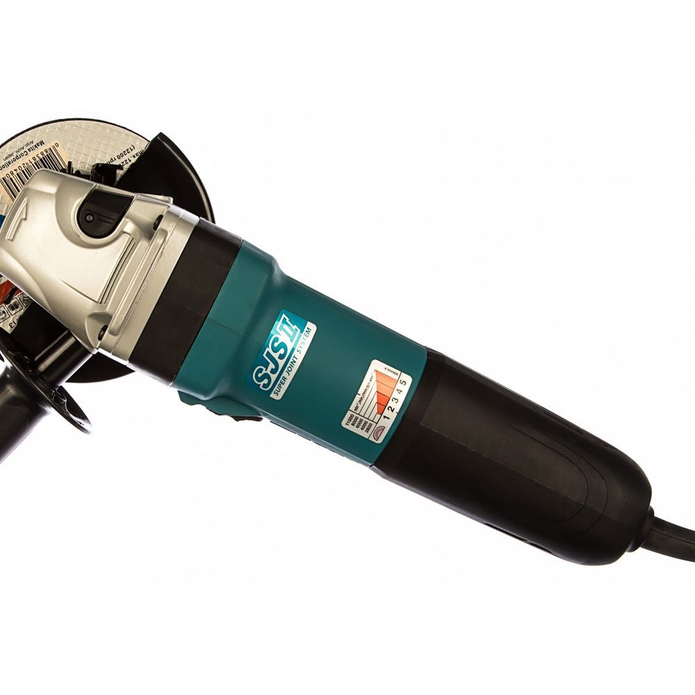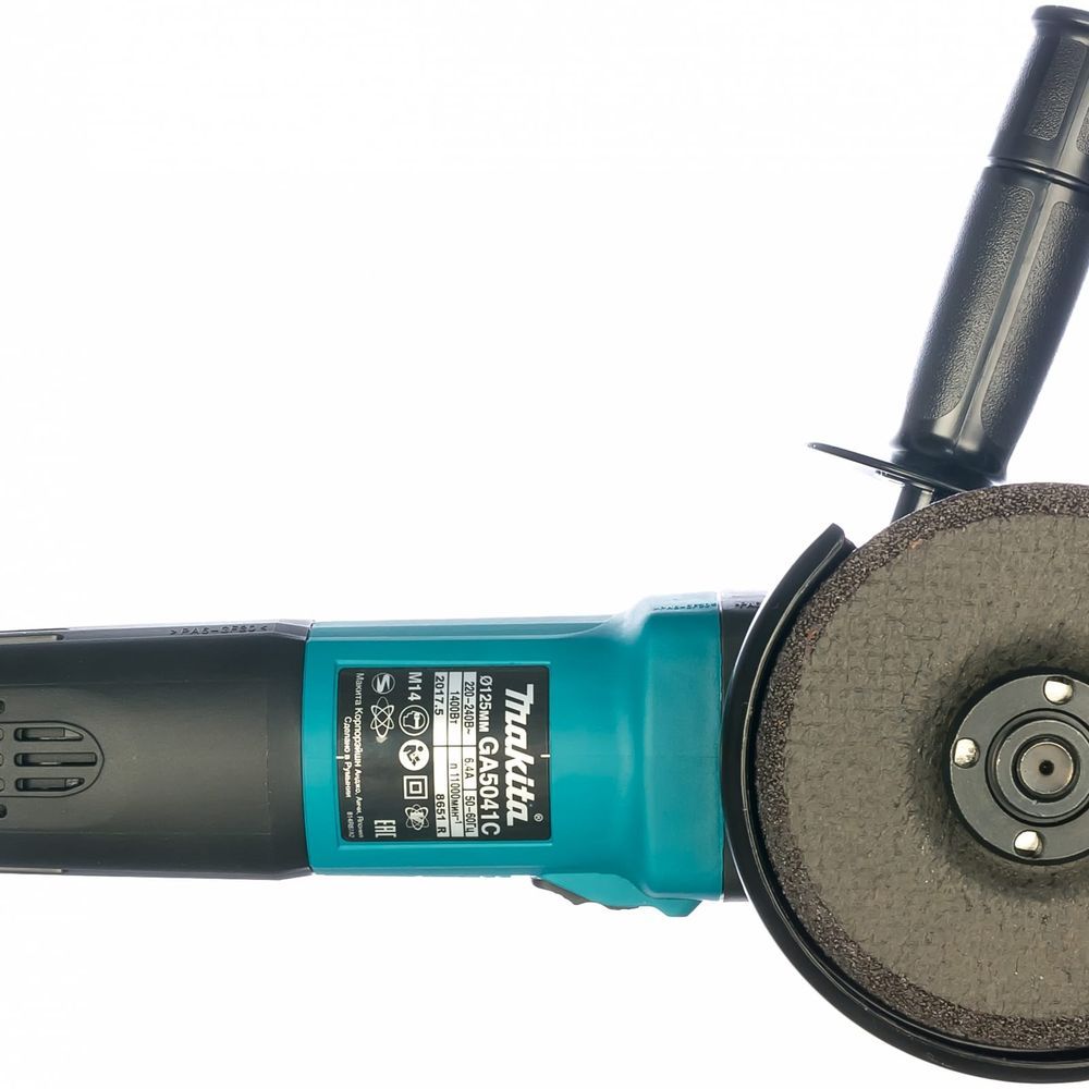 Привод у УШМ Makita GA5041C традиционный, щеточный, но оснащен целым набором средств для эффективной работы по любой технологии обработки. Обеспечивается эта возможность, прежде всего, широким диапазоном скоростей, на которых он функционирует. С помощью пятипозиционного регулятора-колесика можно установить от 2800 до 11000 об/мин.