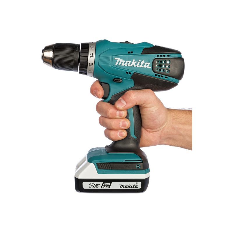 Более того, в агрегате Makita DF457DWLE, как в профессиональном шуруповерте, можно регулировать момент затягивания (16 установок с помощью кольца). Таким образом, при работе с мягким материалом можно выбрать его минимальное значение (24 Нм) и не опасаться повреждения поверхности. А переключатель реверса, положенный шуруповерту «по штату», ещё поможет и при сверлении – чтобы извлечь застрявшее сверло.