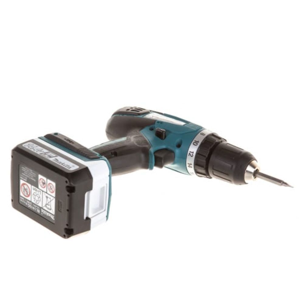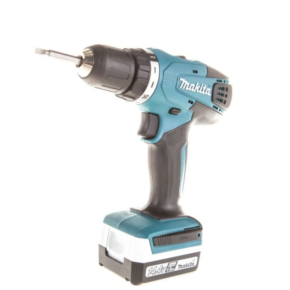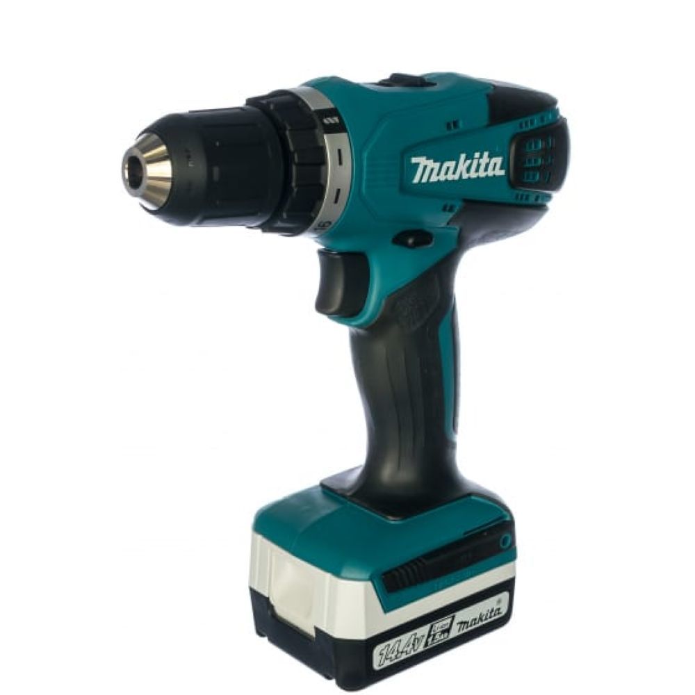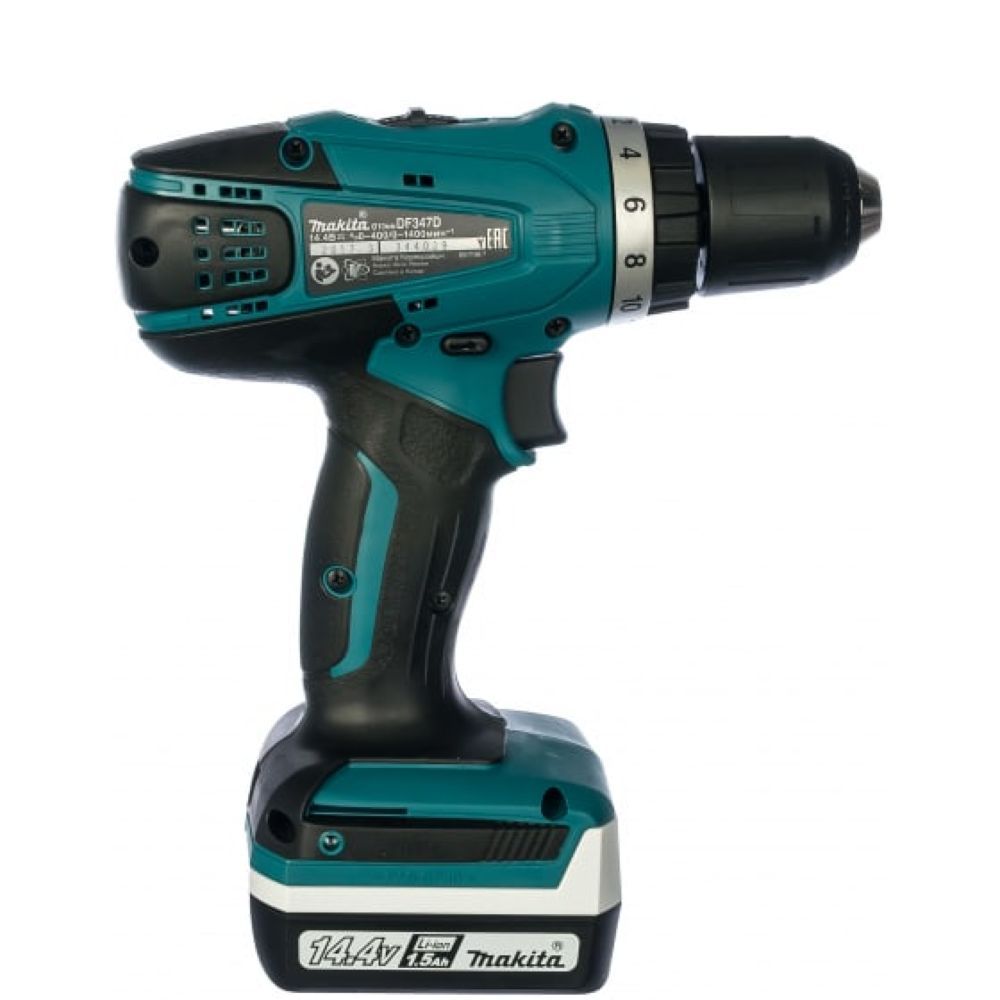 Электропитание инструмента Makita DF347DWLE производится от литиево-ионного аккумулятора на 14.4 В. Следует помнить, что в этой модели устанавливается аккумуляторы серии G. Аккумуляторного блока нет в комплекте поставки, но зарядное устройство в кейсе с инструментом имеется. Защита от перегрузки аккумулятора – трехступенчатая, от перегрузки по току, при перегреве и при снижении напряжения ниже допустимого уровня. При возникновении любой из этих ситуаций привод автоматически отключается.