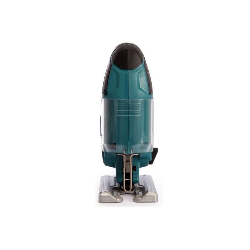 Во избежание случайного включения лобзик Makita JV101DWAE оборудован фиксатором выключателя, который используется и для изменения скорости движения пилки от нуля при увеличении давления. Из оснащения этого инструмента можно упомянуть сдвижной пылезащитный кожух, предотвращающий выброс мусора, а также направляющую рамку, для которой в боковой части основания имеется квадратное отверстие. Она используется и при прямой, и при круговой резке.