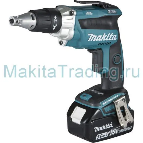 Этот шуруповерт компания Макита вывела на рынок в 2017 году, и в нем реализованы новые технологии, облегчающие работу его пользователю. Предназначен инструмент Makita DFS250RFE для закручивания саморезов и шурупов диаметром 6 мм в материал разной твердости – пластик, древесину и металл. Удобно его использовать и при креплении гипсокартонных плит – здесь диаметр шурупа ограничен величиной 5 мм.