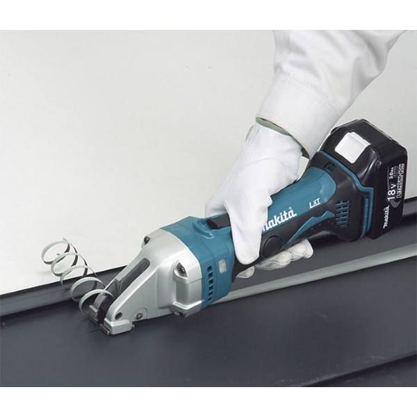 Инструмент для разделки листового металла с двойным резом очень удобен, поскольку не требует дополнительной обработки краев материала. Это с лихвой перекрывает его повышенный расход в виде спиралеобразной полоски. В 2017 году компания Макита предложила рынку очередную такую модель с аккумуляторным питанием. Обладатель листовых ножниц Makita DJS161RFE получает ещё и другие преимущества: