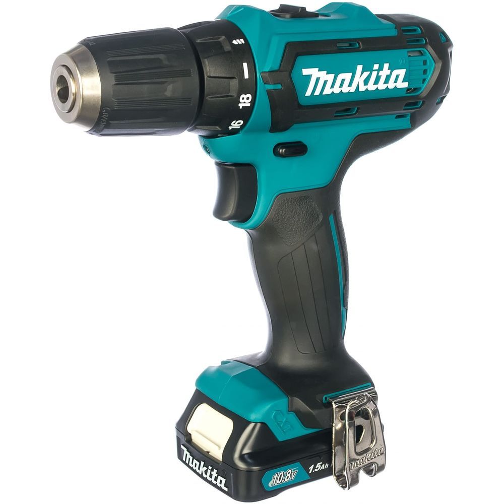 Электропитание дрели  Makita DF331DWYE4 осуществляется от литиево-ионного аккумуляторного блока слайдерного типа напряжением 10,8 В. Это новая модель аккумуляторов серии BL10XX производства Макита, и она оснащена четырехпозиционным индикатором разряда. Емкость, в зависимости от модификации, находится в диапазоне от 1,5 до 4 А-час.