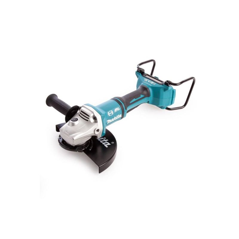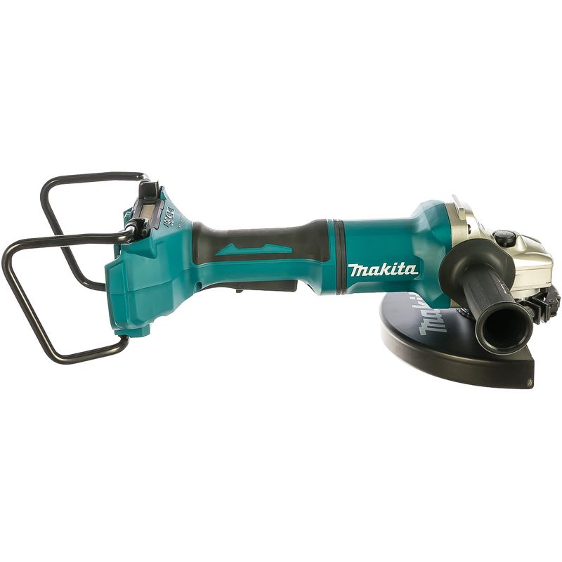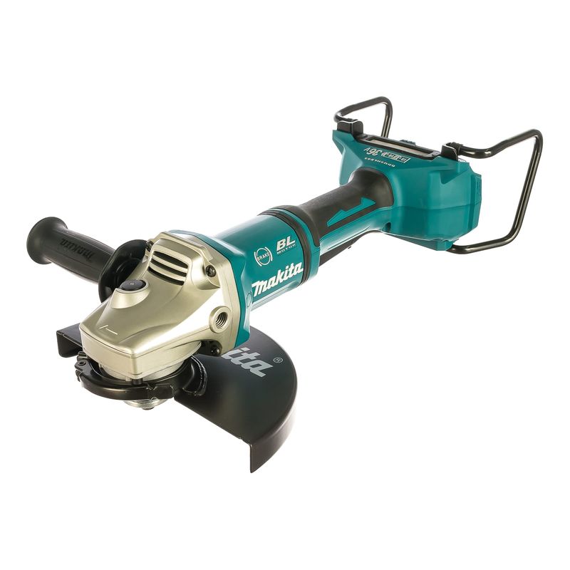 Оснащена УШМ Makita DGA900Z и средством предотвращения случайного пуска. При установке аккумуляторов инструмент самопроизвольно не включится – для разблокировки имеется специальный рычаг. Привод инструмента начнет работать при нажатии на курок без рывка – за это отвечает другая функция – плавного запуска. Предусмотрен в агрегате и электрический тормоз, функционирующий только при наличии питания привода.