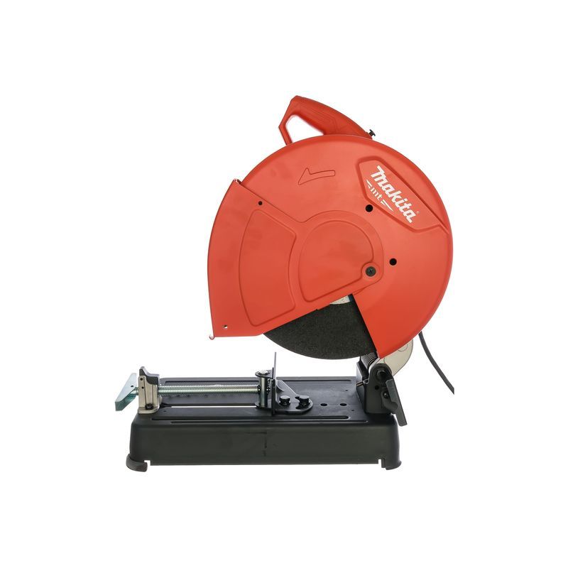 С помощью пилы Makita M2400 можно разделывать заготовки из металла любой твердости, пригодна она и для распила керамики. На верстаке это изделие займет немного места – занимаемая площадь  500х280 мм. Глубина реза заготовки зависит от угла наклона диска, его максимальное значение ограничено величиной 45 град. В последнем случае она составляет 10,2 см, при резе под прямым углом увеличивается.