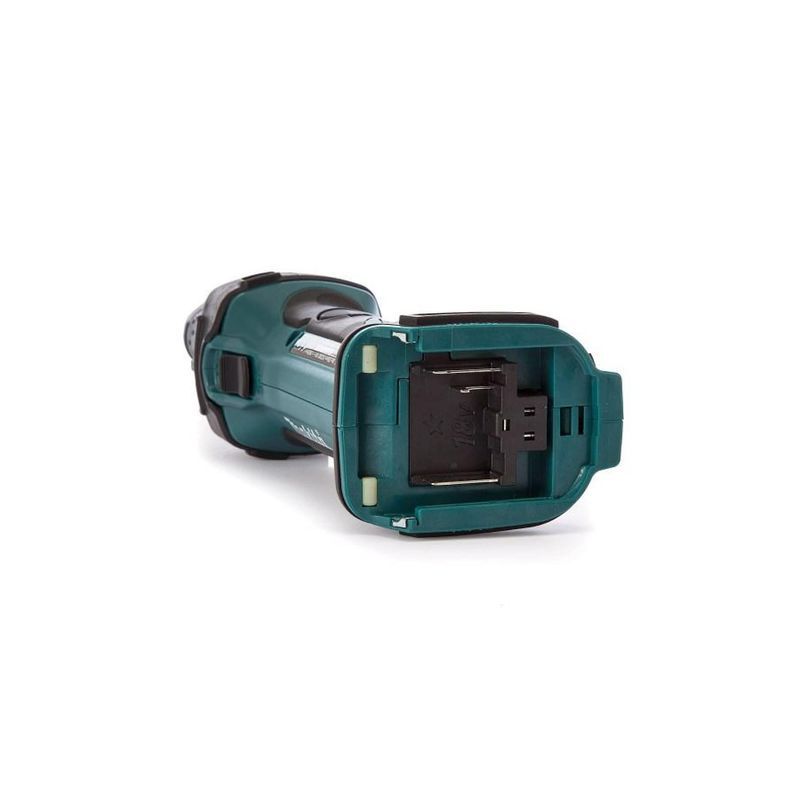 В комплект поставки шлифмашины Makita DGD801Z аккумулятор не входит. Инструмент рассчитан на установку популярных слайдеров серии BL18XX и обеспечивает их защиту от недопустимого разряда и токовой перегрузки. Если пользователь выберет блок, имеющий букву В в конце обозначения, то получит возможность определять уровень его разряда по встроенному индикатору.