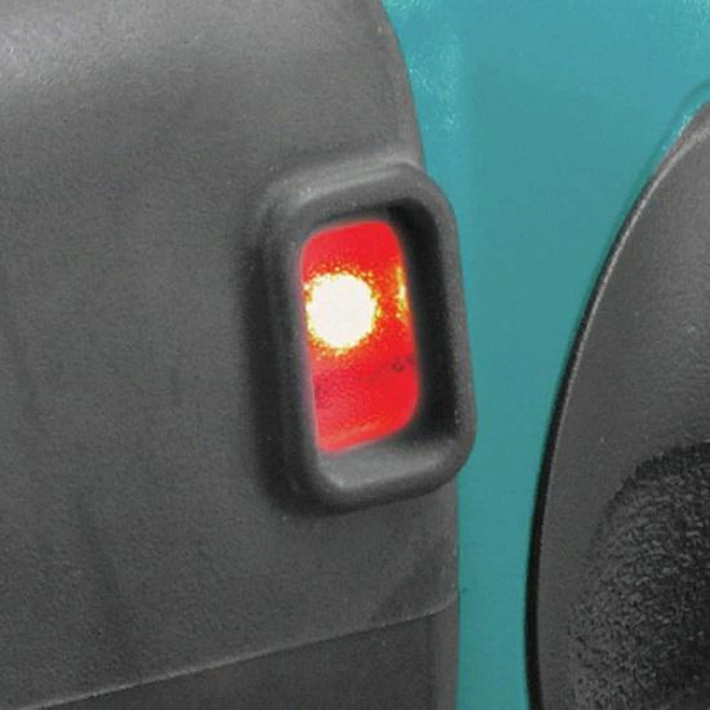 Имеется индикатор и у самой шлифмашины Makita DGD801Z. Он загорится, если привод инструмента начнет перегружаться. Светодиод начнет мигать при срабатывании блокировки. Такое возможно, если присоединить батарею к шлифмашине, забыв перевести движковый переключатель в положение OFF. Привод при этом «откажется» работать.