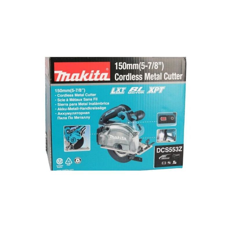 Пила рассчитана на разделку мягкой стали и других материалов. Диском и аккумулятором она не комплектуется и пользователь может выбрать сам подходящую насадку и литиевый аккумулятор любой емкости из серии BL18XX напряжением 18 В. Сам агрегат Makita DCS553Z предоставлеят ему такие преимущества: