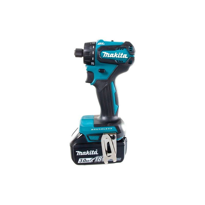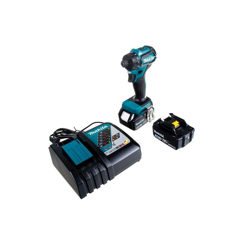 Шуруповерт Makita DDF083RFE комплектуется 2 аккумуляторами, зарядным устройством и чемоданом. К инструменту можно присоединить литиево-ионный слайдер напряжением 18В из десятка модификаций серии BL18XX. Емкость его может быть от 1,5 до 6 А-час, и это немного скажется на весе инструмента. Его значение может быть 1100 или 1300 грамм.