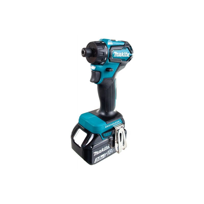 Инструмент Makita DDF083RFE обладает всеми функциями, требуемыми для работы в качестве профессионального шуруповерта. Двигатель имеет электрический тормоз, имеется и классический переключатель реверса, при установке которого в нейтральное положение агрегат можно использовать в качестве ручной отвертки. Поставив при этом кольцо регулировки момента в положение «сверла», можно просто определить вручную и степень затяжки шурупа.