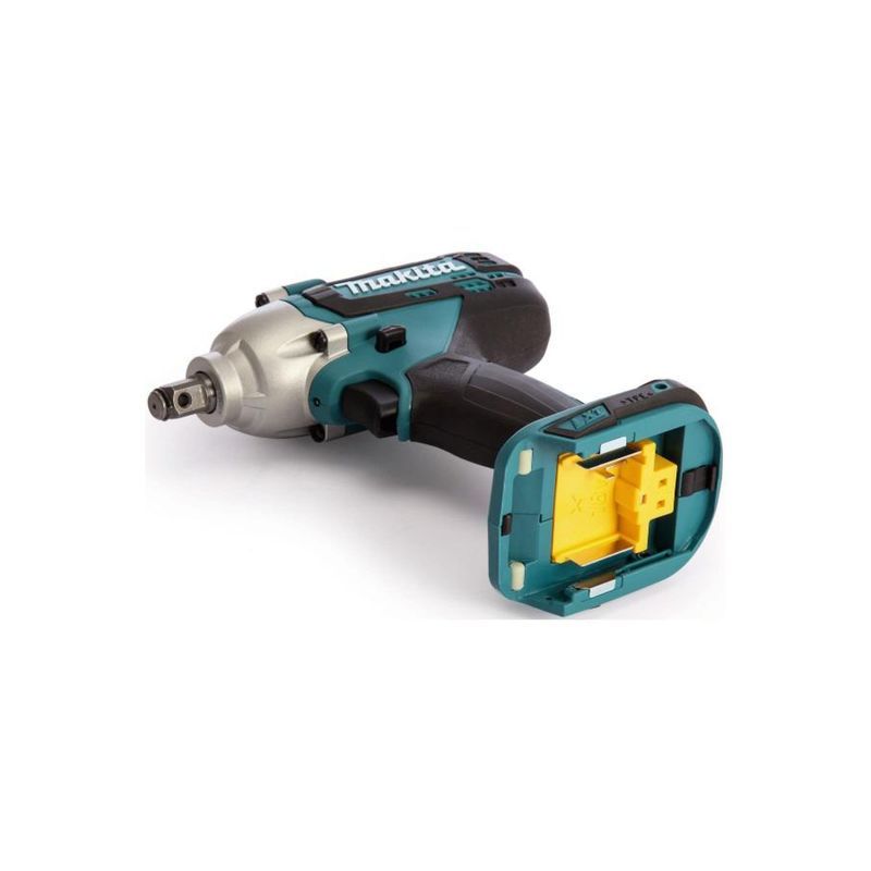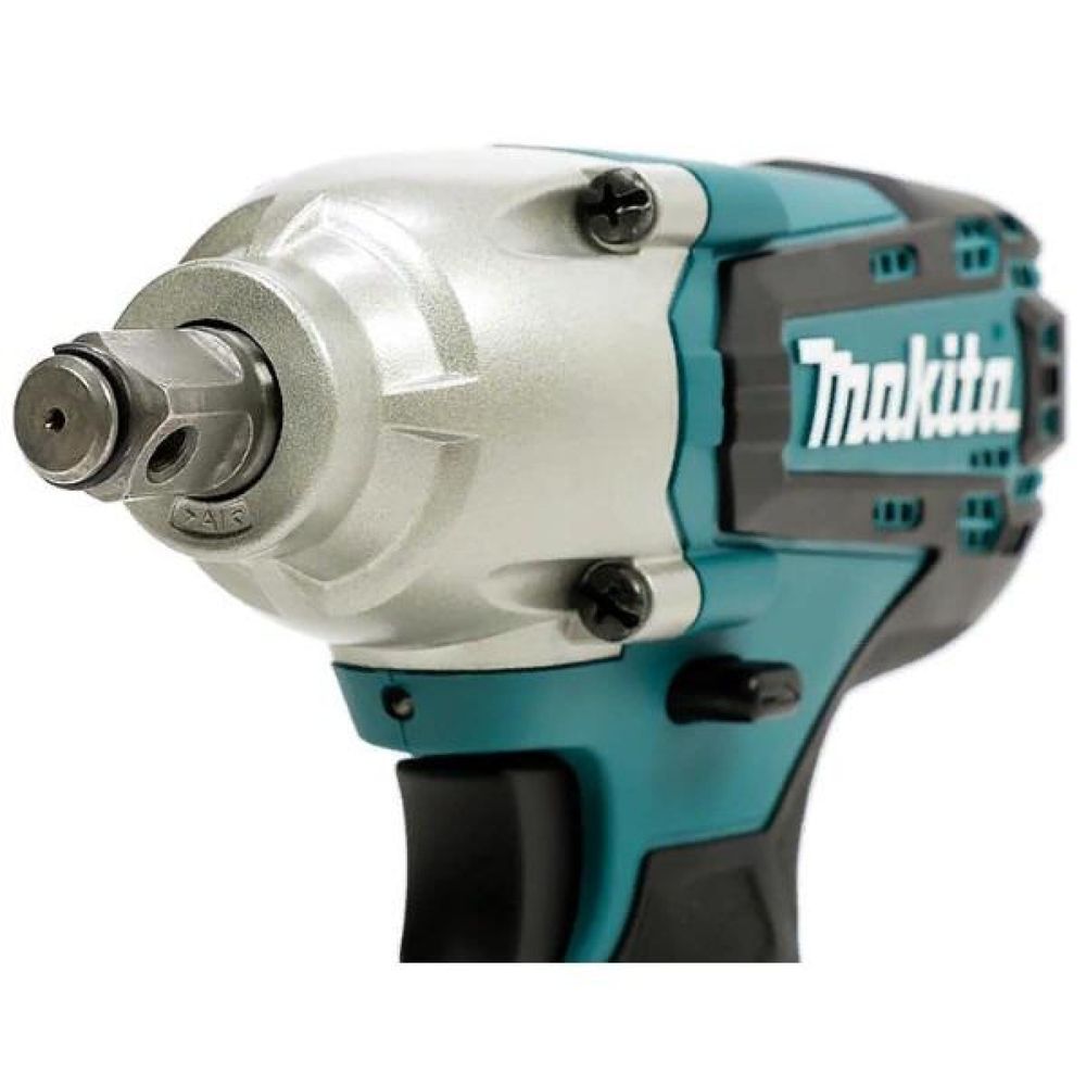 При этом вес гайковерта Makita DTW190JX3 изменится на 300 грамм – от 1400 до 1700 г. Длина этого инструмента составляет всего 17,6 см. Это обусловлено типом используемого патрона – он в агрегате специализированный, под установку насадок с квадратным гнездом 12,7 мм. Их можно ставить как с дополнительным штифтом, так и без него.