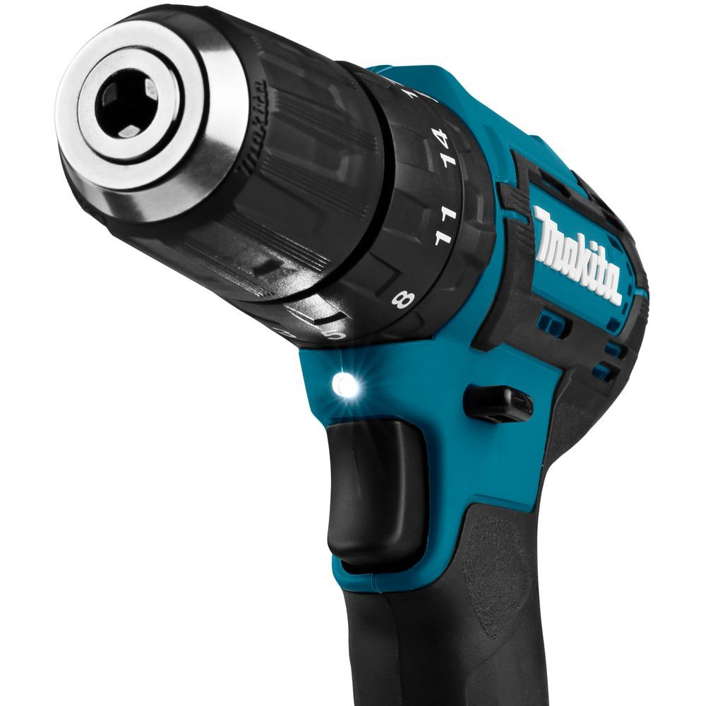 К этому можно добавить, что рукоятка инструмента Makita HP333DZ обрезинена и имеет эргономичную форму с надежным хватом. Предусмотрена в инструменте и подсветка зоны работы с послесвечением. Реверс, мягкий пуск и электрический тормоз – тоже есть, ведь этот инструмент является ещё и полноценным шуруповертом.