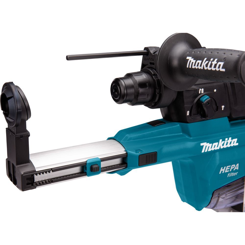 Особенность перфоратора Makita HR2652 – выдвижной пылевсасыватель с максимальной длиной 19 см. Инструмент можно использовать и с другими средствами пылеудаления, например, гофрой с патрубком для подключения пылесоса.