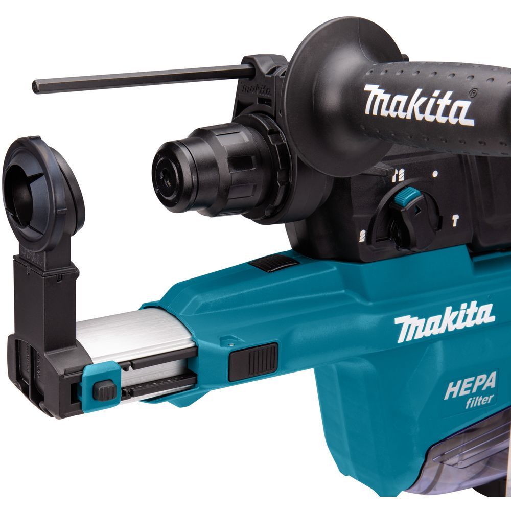 Особенность перфоратора Makita HR2653 – выдвижной пылевсасыватель с максимальной длиной 19 см. Инструмент можно использовать и с другими средствами пылеудаления, например, гофрой с патрубком для подключения пылесоса.