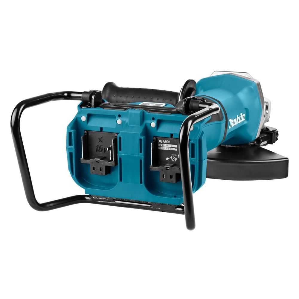 Ими УШМ модификации Makita DGA901ZU не комплектуется (буква Z в обозначении), и пользователь может самостоятельно выбрать подходящий ему литиево-ионный блок серии BL18XX емкостью от 1,5 до 6 А-час, а также зарядное устройство к нему. Есть среди вариантов этих слайдеров и блоки, оснащенные встроенным индикатором разряда.